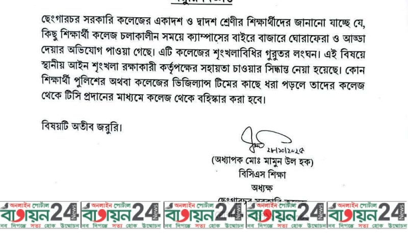 দল-মত নির্বিশেষে চাঁদপুর-২ আসনে জনপ্রিয়তার শীর্ষে তানভীর হুদা বিনয়বাঁশী শিল্পীগোষ্ঠী কর্তৃক বাংলাদেশের ঐতিহ্যবাহী রাস উৎসব পরিদর্শন  কিউএস এশিয়া ইউনিভার্সিটি র‌্যাংকিং-এ প্রথমবারের মতো বরেন্দ্র বিশ্ববিদ্যালয় দেশের প্রথম কেবল স্টেইড ব্রিজ হবে মতলব-গজারিয়া সেতু : সেতু সচিব আবদুর রউফ মতলব উত্তরে জাটকা রক্ষা অভিযানে ১২০ কেজি জাটকা উদ্ধার ; এতিমখানায় ও দুস্থদের মাঝে বিতরণ মতলব উত্তরে গাঁজা চাষের সন্ধান ; ৪টি গাছ উদ্ধার ক্যাম্পাসে শৃঙ্খলা ভাঙলে বহিষ্কার: ছেংগারচর সরকারি কলেজের কঠোর নির্দেশনা বিএনপির নেতা সালাউদ্দিন মাহতাবকে জরিয়ে ভুয়া কল রেকর্ড প্রচারণা চাঁদপুর-২ আসনের বিএনপির মনোনয়ন পাওয়ার পর বাবা-মা’সহ প্রয়াত বিএনপির নেতাদের কবর জিয়ারতে ড. জালাল উদ্দীন অনলাইন নারীর দ্বৈত চরিত্র : সুবিধাবাদী ব্যবহার ও সামাজিক দ্বন্দ্ব
